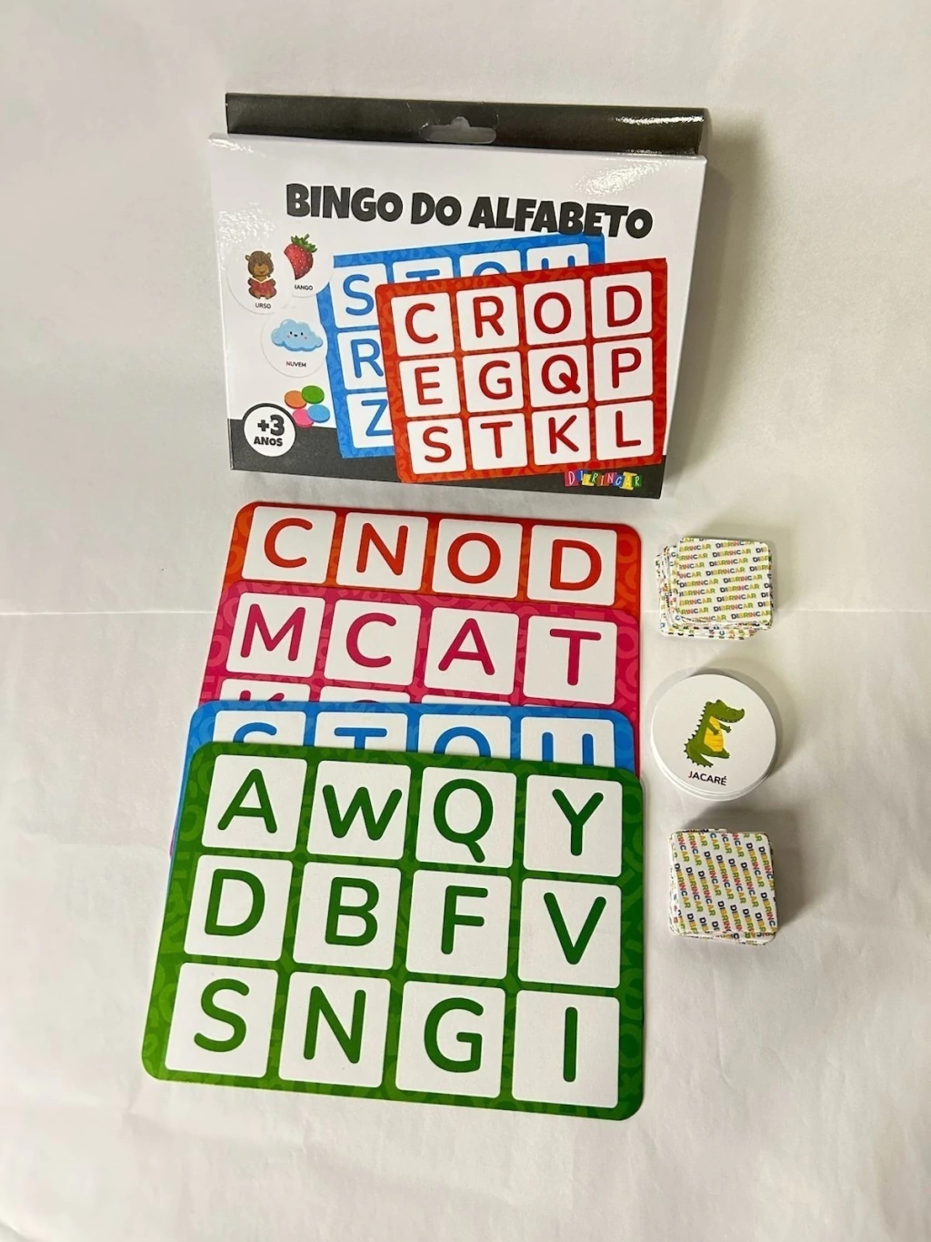 O Bingo do Alfabeto é um jogo lúdico e educativo que estimula o reconhecimento das letras, o desenvolvimento da leitura e a ortografia de forma leve e divertida.