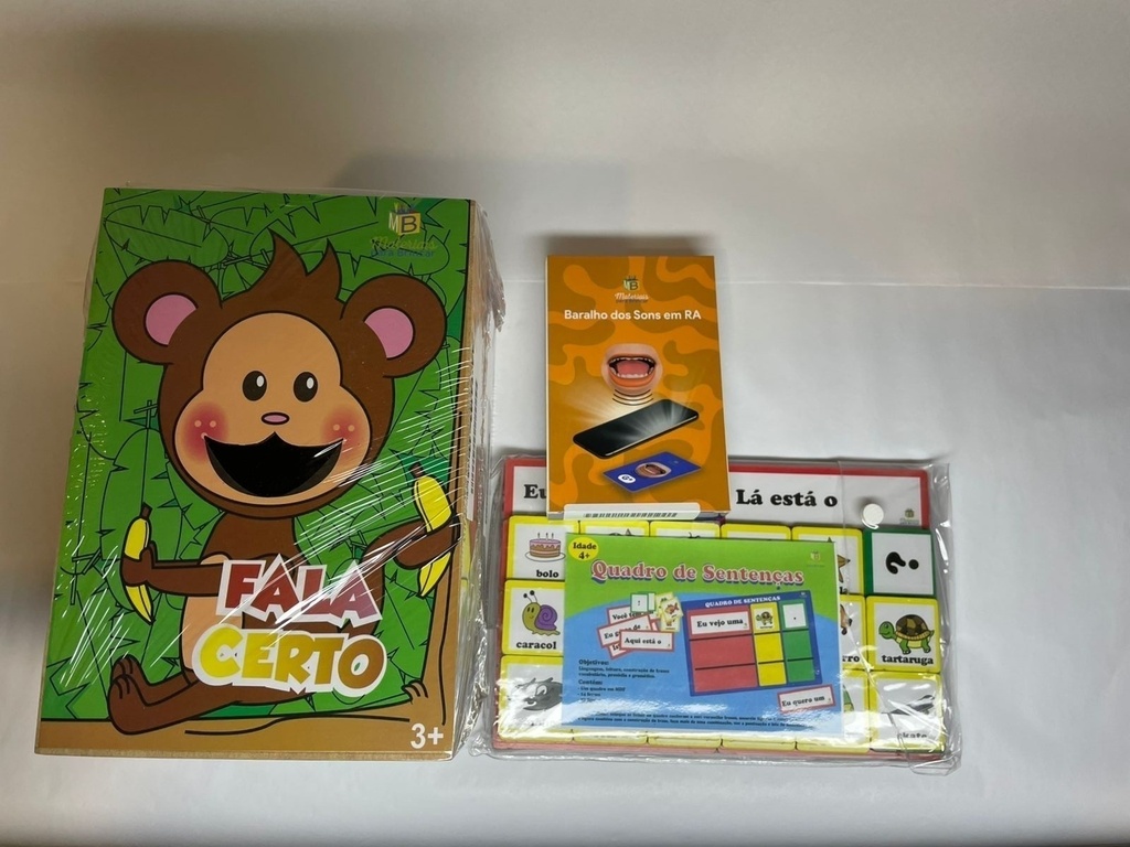 O Fala Certo é uma ferramenta terapêutica lúdica indicada para crianças a partir de 4 anos, com foco na correção e automatização dos sons da fala, especialmente os fonemas “r” e “l”. O kit inclui uma caixa de madeira com figura de macaco, 60 fichas magnéticas e 10 bananas que funcionam como recompensas.
