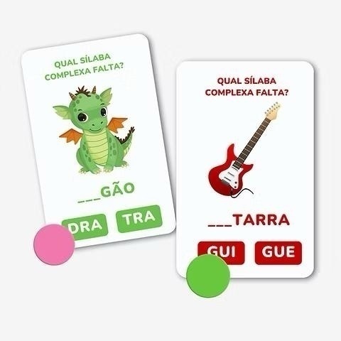 Este jogo trabalha a consciência fonológica, ensina sílabas complexas e desenvolve atenção. O objetivo é identificar a sílaba correta que completa a palavra destacada.